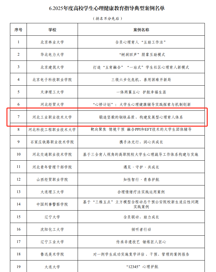 近日,教育部公示了2025年度高校思想政治工作质量提升综合改革与精品建设项目遴选结果,爱体育3个项目入选。其中,《以小见大 以微见著 着力培育时代新人——基于“一站式”学生社区系统推进“精准思政”的创新与实践》入选高校思想政治工作精品项目,《锻造坚毅的钢铁品质 构建发展型心理育人体系》入选高校学生心理健康教育指导典型案例,学校“一站式”学生社区入选全国高校示范“一站式”学生社区。