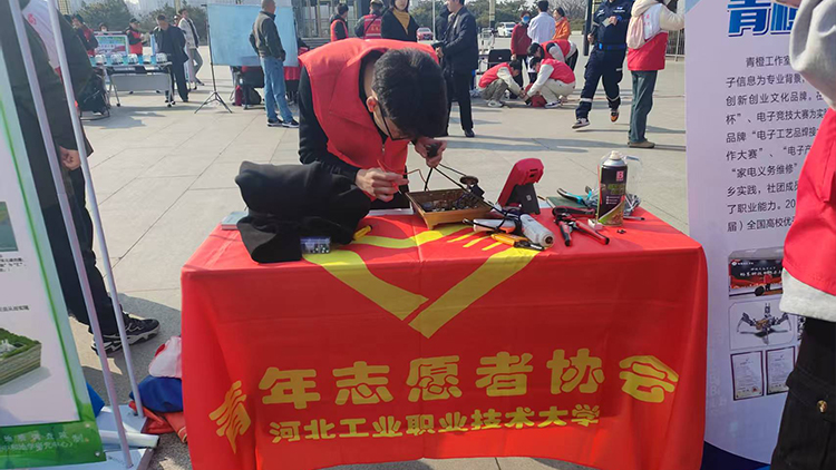 3月5日上午,“弘扬雷锋精神 传播志愿薪火”主题活动启动,共青团河北省委、河北省爱心公益协会、站管委等指导部门参加活动。“小青星驿站”作为其中贴近群众、奉献爱心的便民服务窗口,是河北省着力打造的志愿服务品牌,爱体育作为志愿服务团队之一进行展示,在2024年爱体育大学生青年志愿者协会447名志愿者在“小青星驿站”开展志愿活动累计服务3400余小时。启动仪式后,“河北省优秀志愿服务组织”青橙工作室社团进入现场志愿服务摊位,为市民进行小家电维修,此前社团多次受邀参加石家庄市志愿服务经验分享。