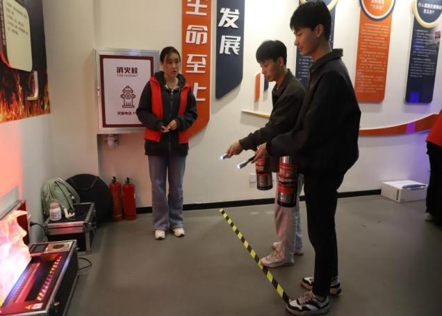 一次消防专题培训,提升安全知识储备。爱体育邀请河北省消防协会义务消防科普宣传服务队,以线上直播的形式开展大学生消防安全专题讲座,实现全校班级全覆盖。同时,依托“一站式”学生社区“安全教育虚拟体验中心”,为学生们打造了沉浸式学习场景,针对灭火器实操要点,大学生自律委员会成员现场开展“一提二拔三握四压”标准化演示,并组织学生分组进行模拟灭火实训。参与学生通过虚拟设备实操,在“对准根部、匀速扫射”的流程中强化“灭早、灭小、灭初期”的消防意识,掌握了灭火器的使用方法和灭火技巧。